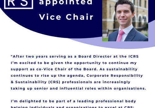 We are pleased to announce that Vic Taylor and Robbie Epsom have been appointed Vice Chairs of the Institute for Corporate Responsibility and Sustainability. They are succeeding Jennie Galbraith who took up the role of Chair.